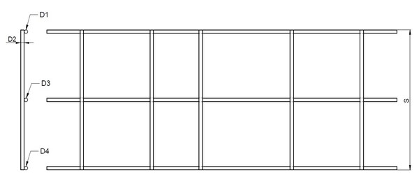Type P single girders are used in lintels over window and door openings. This reinforcement is made with one or two load-bearing wires according to the customer’s requirements, with perpendicular crossbars connected by spot weld. The advantage is that this reinforcement can be produced by us in any length ranging from 0.98 m to 7.50 m and the width of reinforcement from 110 mm to 400 mm. The number of longitudinal wires can be 2-4 and their axial distance must not be less than 10 cm.