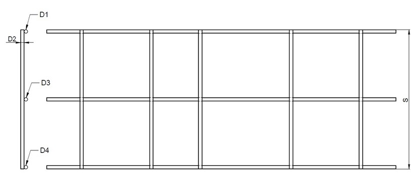 | Reinforcement parameters: Diameter of cross wires | Designation on the diagram: D2 | Reinforcement dimensions: 4 ÷ 6 [mm] | Type of wire used: B500A-G, B550A-G |