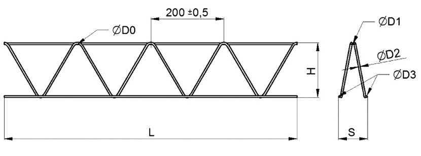 Die Stabilität wird durch zwei Untergurte und einen Obergurte gewährleistet, die mit Diagonalen verbunden sind. Ein weiterer Vorteil ist die Variabilität des Höhenbereiches von 50 mm bis 400 mm und die Anwendbarkeit verschiedener Drahtdurchmesser für die geforderte Belastung. Es ist in leichter und schwerer Ausführung erhältlich.